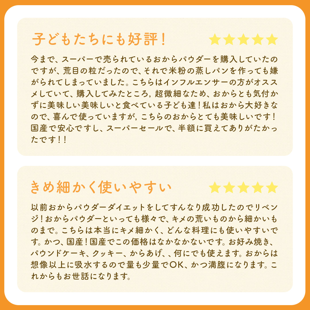 ※おからパウダーと大豆粉は異なるものです。ご注意ください。